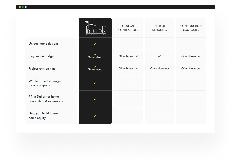 With BuildTX Solutions, you’re in safe hands. Our team has every specialist skill required to complete a high-spec remodel, so you only deal with us. This keeps costs down, avoids delays and ensures quality is flawless from start to finish.